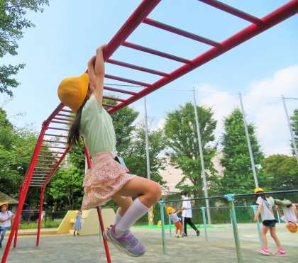 休み時間に、固定遊具で遊んだり、縄跳び、一輪車などで遊んだりすることにより、自然とバランス感覚など、様々な力が身についていきます。