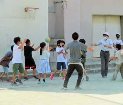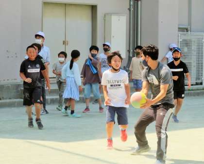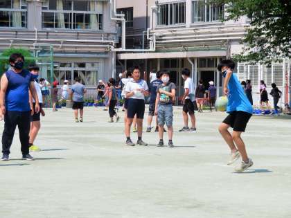 私も5年生とバスケットボールですが、今日も多くの先生が子どもたちと一緒に遊んでいます!