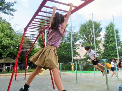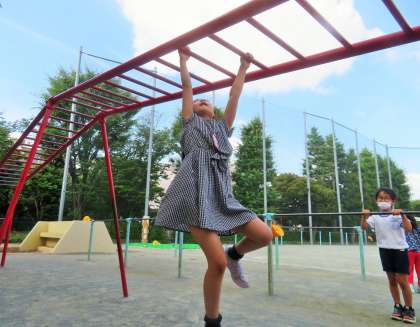 松丘小学校では、始業前の朝遊びや休み時間の外遊び(校庭・屋上・体育館)に毎日取り組んでいます。うんていや登り棒、鉄棒、一輪車で遊んでいる子たちもいっぱいいます。私は、「健康・体力づくり」の原点は「外遊び」と考えています。