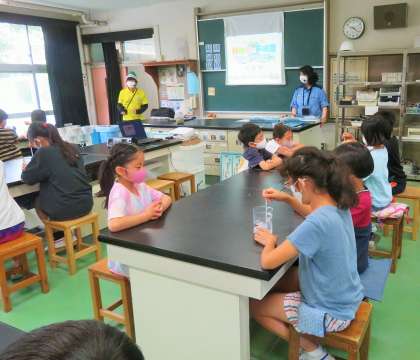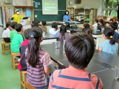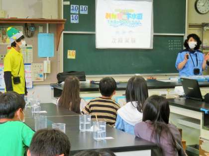 4年生は前回の「水道キャラバン」に続き、今回は「下水道キャラバン」です。使い終わった後の水をきれいにして、また使えるようにしてくださっている方々のお仕事を学習しました。油をそのまま流したらどうなってしまうのか、どのように汚れた水をきれいしているのかなどを学びました。