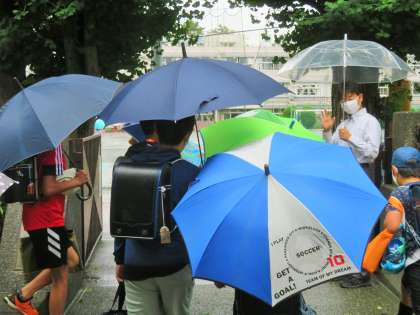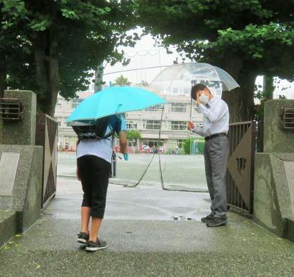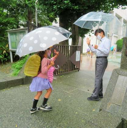 今朝の登校時は、雨の中での登校となりました。しかしこのような中でも、とっても素敵なあいさつがありましたので、3つ紹介します。