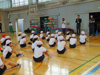 今回の先生方のJICA派遣先は、ルワンダ、カンボジア、マダガスカルということです。言葉も通じない派遣先に飛び込んでいくことになります。体育館などの設備がない国が多く、野原での授業が予想されるそうです。子どもたちは先生方に「がんばってください!」という気持ちを込めて、激励の拍手を送りました!