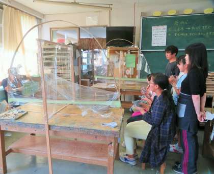 写真は、焼き物、アニメ、ゲームクラブの様子です。