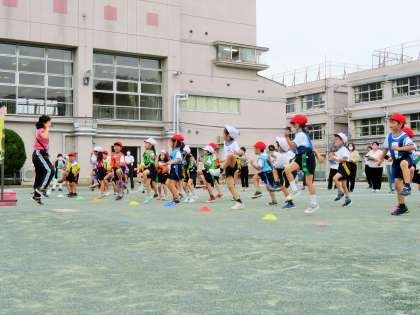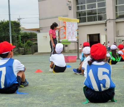 先日は、1年生の岩崎教諭が指導する「鬼遊び」の授業について、日本体育大学教授の白旗和也先生を講師にお招きし、研究授業を行いました。