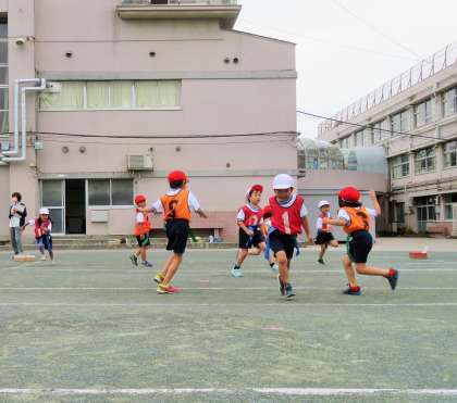 子どもたちは、伸び伸びと「鬼遊び」を楽しんでいました。勝っても負けても相手チームを拍手で称えていました。