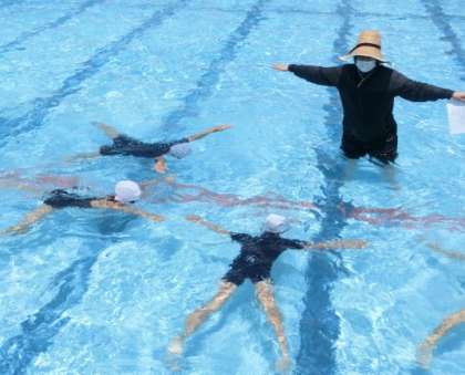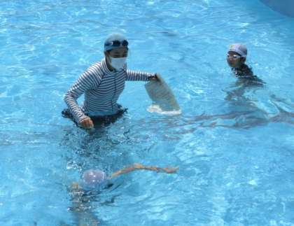 今日は夏季水泳教室5日目、3・4年生の検定日です。気温も高く、泳ぐことが気持ちよく感じるプール日和の一日でした。