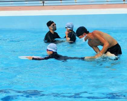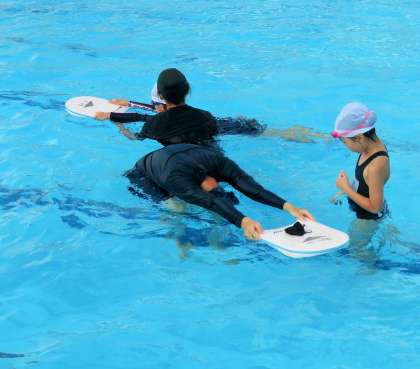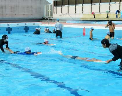 今年はコロナ対策として、蜜を避けるために例年の4分の1の人数で実施しています。少人数ですので、泳力別に個人レッスンが受けられました!