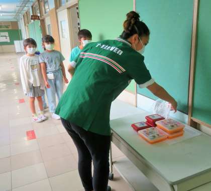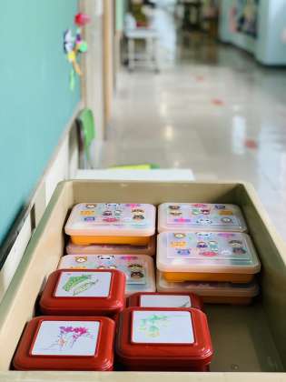 給食弁当の業者さんは、お弁当をそれぞれの教室前まで運んでくださいました。PTAの会長さんをはじめ、役員の皆さんが緊急時に対応できるよう、一緒に回ってくださいました。