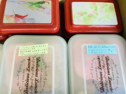 食べ終わったお弁当箱には、子どもたちから感謝の気持ちが記されていました。(もちろん、手作りのお弁当にもありました!)