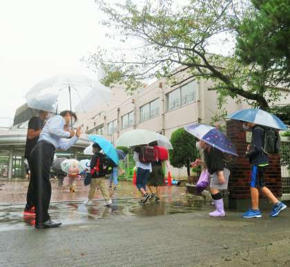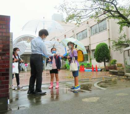 今朝は雨の中での登校となりました。私とジャンケンをする子、すっと立ち止まって礼儀正しくあいさつをする子、「いつもありがとうございます!」と感謝の気持ちを言葉にする子など、様々な会話や笑顔があります。朝のひと時ですが、とっても楽しい時間なのです!