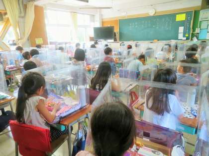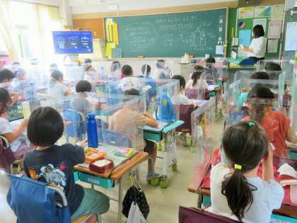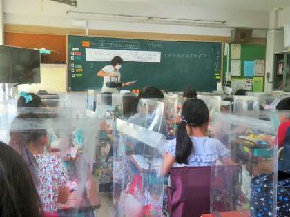 給食弁当を食べている子どもたちに、こっそりインタビューをしてみると、すべての子どもたちが「美味しいです!」と答えていました。教職員も「カレーの味付けもあり美味しいです」と答えていました。本日も、トラブルなく順調でした。