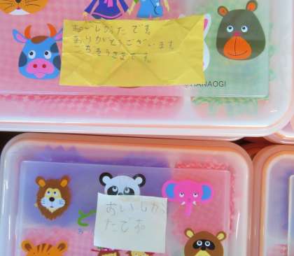 本日の給食弁当です。感謝の気持ちを表した、お手紙もありました!