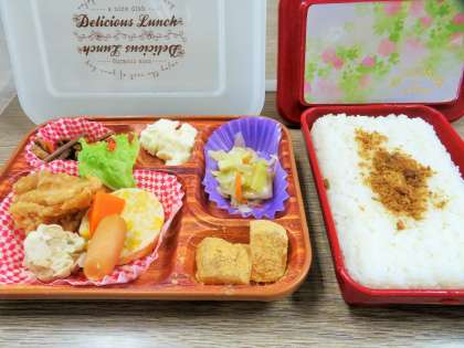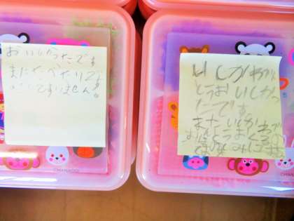本日の給食弁当です。今日も感謝の気持ちを表したお手紙がたくさんありました。業者の方は、大切に持ち帰っていました。