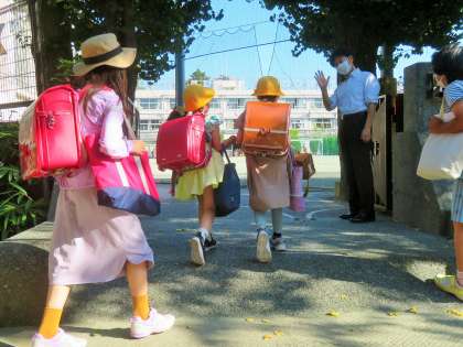 今朝は暑さを感じる中での登校となりました。私とハイタッチをする子、深々とお辞儀をしてあいさつをする子、「いつもありがとうございます!」と感謝の気持ちを言葉にする子など、様々な会話や笑顔があります。朝のひと時ですが、とっても楽しい時間なのです!