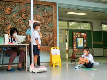 2学期の身体計測がはじまっています。風通しのよいところで、ソーシャルディスタンスが、しっかり守れていて感心しました。