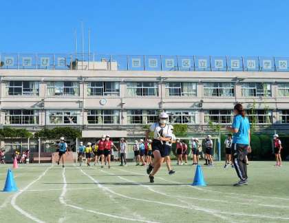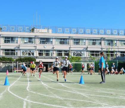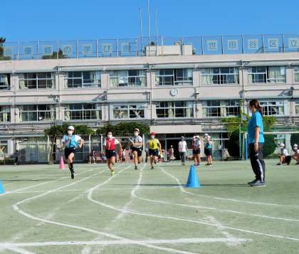 運動会に向けて、6年生選抜リレー女子の朝練習です。前走者とのタイミングがだいぶわかるようになり、リードしてバトンをもらえる選手が増えてきています。回数を重ねることによって上手になっていく様子がよくわかります。