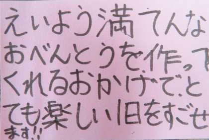 本日の給食弁当です。今日も感謝の気持ちを表したお手紙がありました。業者の方は、大切に持ち帰っていました!