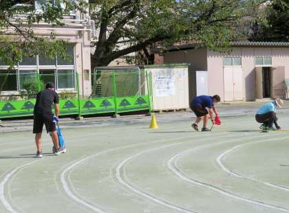 コースのラインも一本一本も、私たち教師が心を込めて引き、準備万端、子どもたちの舞台を整えました。