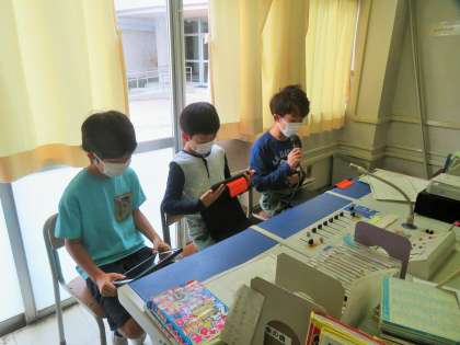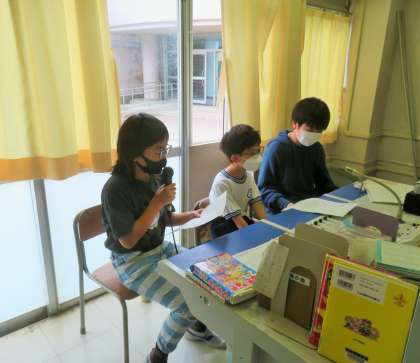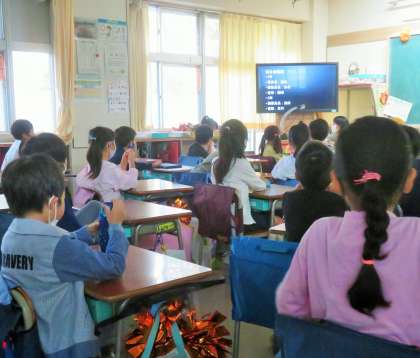 今日は朝の時間に、委員会企画集会がありました。放送や動画を活用しながらの発表です。今回の発表は、環境委員会とパソコン委員会です。クイズを織り交ぜるなどの工夫があり、楽しみながら委員会の活動内容を知ることができました。
