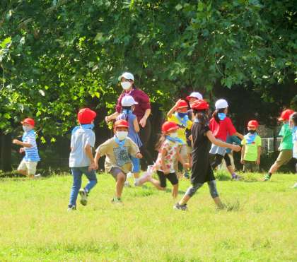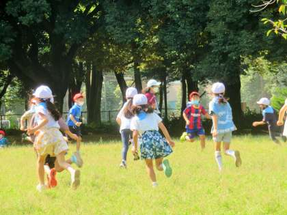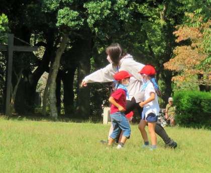 クラス毎に元気いっぱいに遊んだり秋見つけをしたりしました。どんぐりを拾っている写真が取れずすみません。