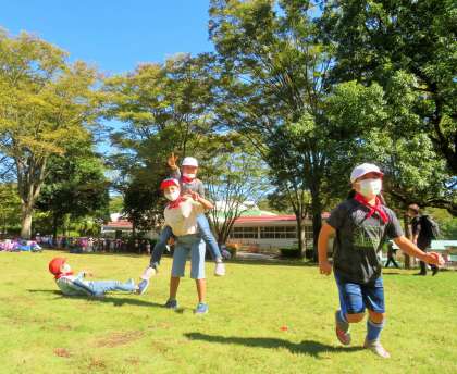 芝生広場では、得意技を見せてくれたりして、上手に遊んでいました!