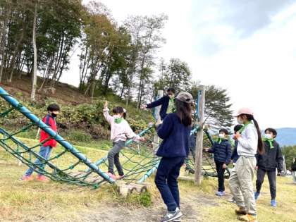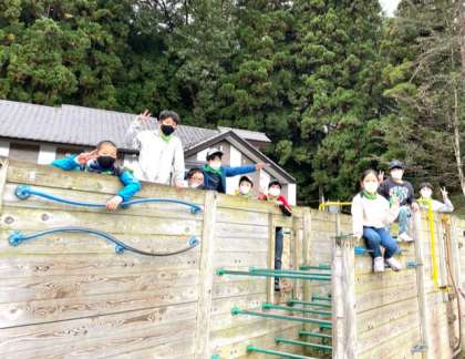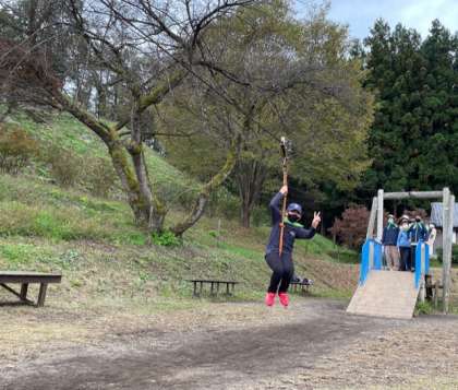 プレイゾーンには、様々なアスレチックやターザン、ロッククライミングなどの遊具があり思いっきり遊んでいます!