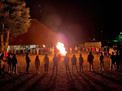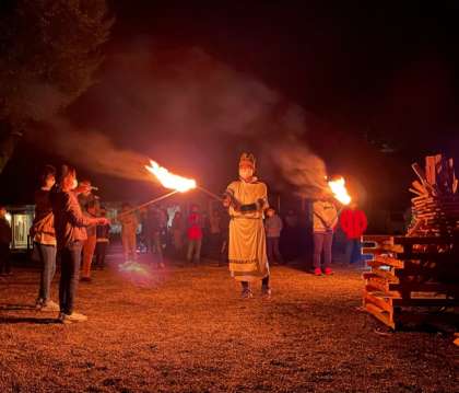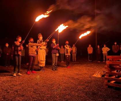 キャンプファイヤーが始まりました。川場の山から降りて来た火の神から「希望の火」「挑戦の火」「信頼の火」「絆の火」をもらって点火しました。