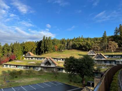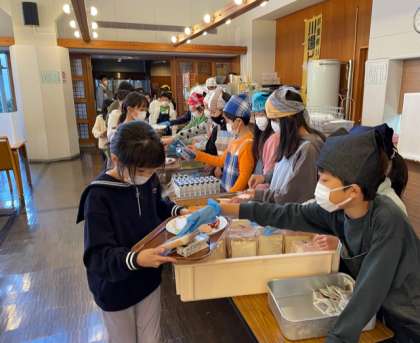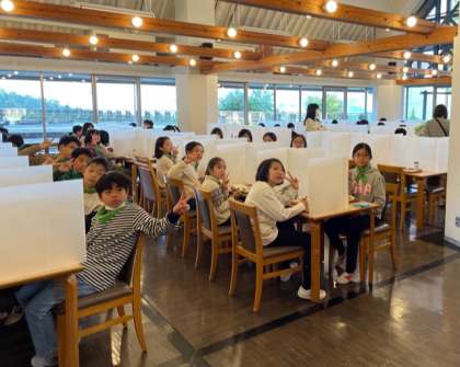 美味しい朝食を食べました。朝方の雨が上がり、一気に晴れてきました。この後、閉室式を行い、村めぐりへと出発します。