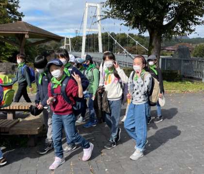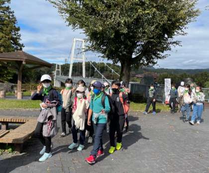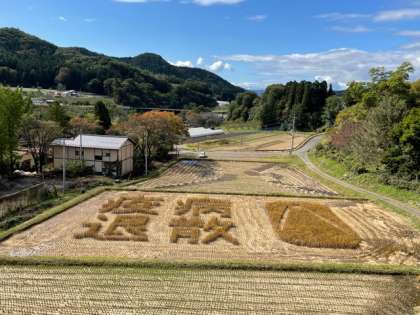 吊り橋「ふれあい橋」から見える田んぼアートです。もうすぐ、田園プラザです!