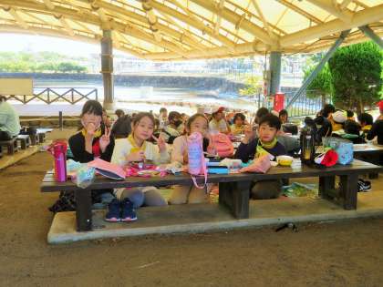 石けんでしっかりと手を洗った後は、待ちに待ったお弁当です。