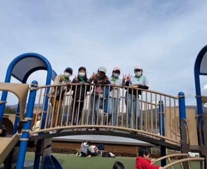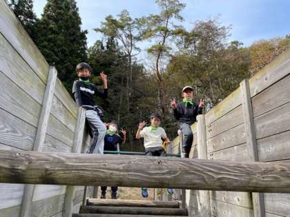 プレイゾーンには、様々なアスレチックやターザン、クライミングなどの遊具があり思いっきり遊んでいます!