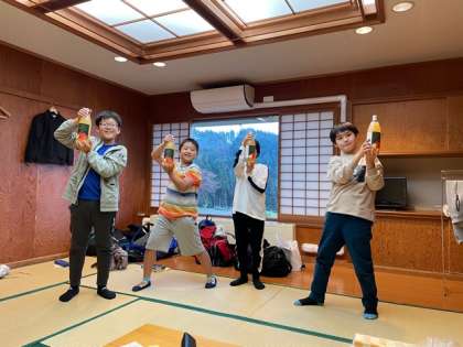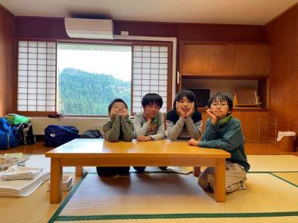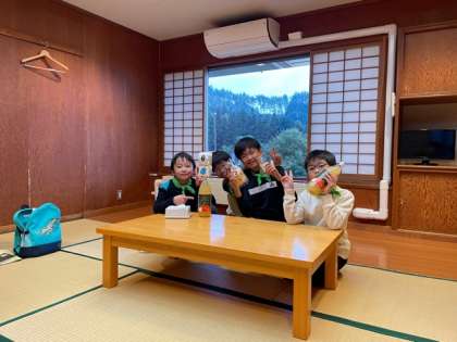 宿舎は大自然の中にあります。宿舎内は掃除が行き届いていて綺麗です。部屋の中もよく整頓して使っています。みんなとっても元気です!