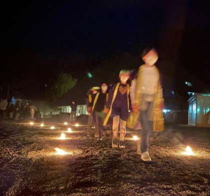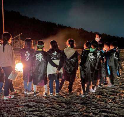レク係(キャンプファイヤー)の子どもたちには、大きなプレゼントが待っていました!明日は村めぐりです。子どもたちは元気ですので、ご安心ください。それでは、今日はここまでです。おやすみなさい。