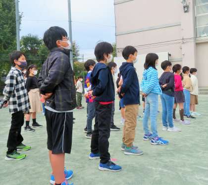 今日の全校朝会では、感謝の気持ちを言葉にできる、手紙に記すことのできる子どもの話をしました。正門で子どもたちを迎えていた時のことです。工事の方は毎日のように落ち葉を掃いていました。その姿に1年生と2年生の子が、自然と「いつもありがとうございます!」と、きちんとお礼を言っていたのです。きっと、工事の方は嬉しかったと思います。