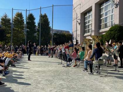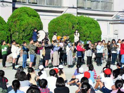 先日の音楽朝会は「金管バンド発表会」です。金管バンドの子どもたちは、活動が制限される中でしたが、この日のために朝練習に一生懸命取り組み、聞いている人の心に響く演奏を披露しました。
