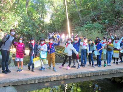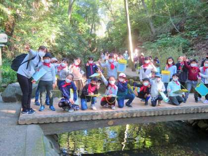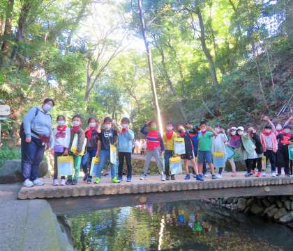 さわやかなお天気に恵まれ、最初の見学地は等々力渓谷です。等々力渓谷は、都内23区内で唯一の渓谷ですので、ここが都内かと思うほど静寂で、川のせせらぎだけが聞こえ、自然に囲まれた散策路が続きました。まさに都会の秘境です。