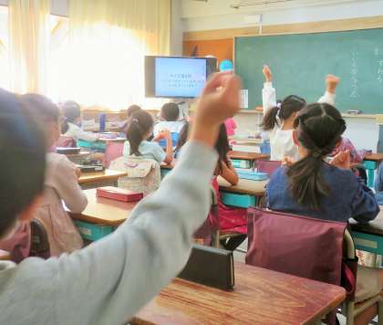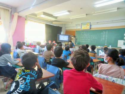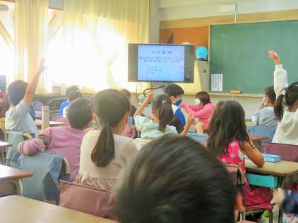 子どもたちは集中して動画を見て、クイズに正解すると思わずガッツポーズがでていました。