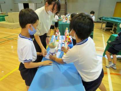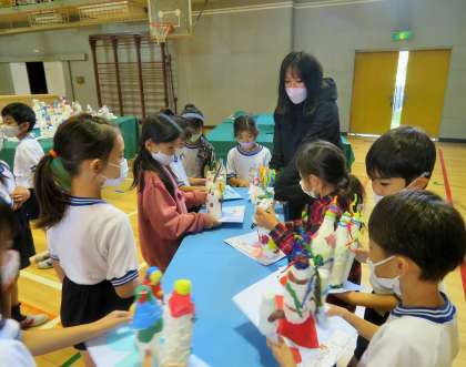 展覧会に向けて、立体作品の搬入が始まっています。子どもたちが、思いを込めて表現しました。一人一人の工夫、オリジナリティー溢れる作品を楽しみにしていてください!