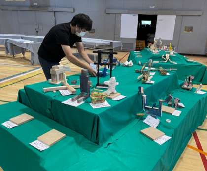 連日遅くまで、体育館や廊下で準備作業をしている先生が大勢います。外は真っ暗、お腹がすいても、展覧会の準備をしています。