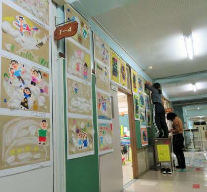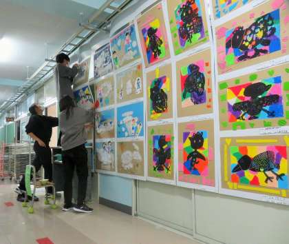 子どもたちの作品を、少しでもよくお見せすることができるようにと、作品の配置や装飾の一つ一つに工夫を凝らしています。