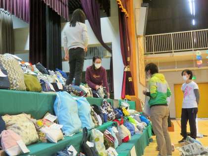 写真は、1年生、1年生、家庭科作品の様子です。