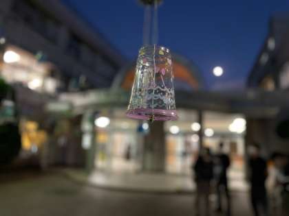 明日を前に、特別にちょこっとだけお見せします。5年生が作成した風鈴の向こう側には月が綺麗に見えます!