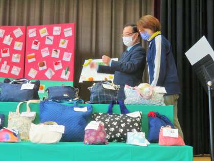前校長の北村先生がお越しになりました。子どもたちの成長や充実した展覧会について褒めていただきました。