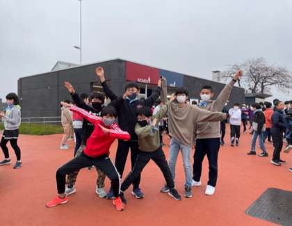 羽生パーキングエリアに着きました。高速道路は順調で、大きな声を出さなくてもできるバスレクを楽しみながら、あっという間にパーキング到着です。天候は曇りです。