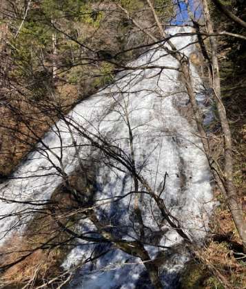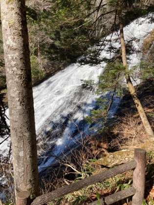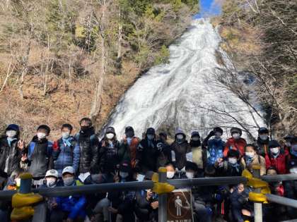 湯滝に到着しました。湯ノ湖から流れ落ちる落差50mの豪快な滝です。清涼感をみんなで満喫しました。