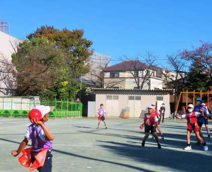 まずは、チーム毎に作戦を考えての練習、そしてゲームです。