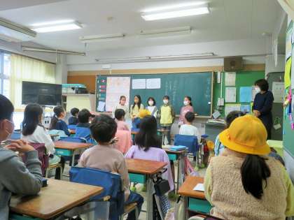 今日は4年生が、展覧会で1年生の作品を見た感想を「きらりカード」に書いてプレゼントしました。1年生の個性あふれる作品をしっかりと見て感想を書くことで4年生の成長もぐんと伸びるのです。