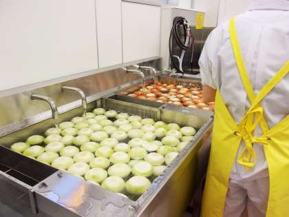 松丘小のハッシュドポークライスのおいしさのヒミツは、じっくりいためたたまねぎです。