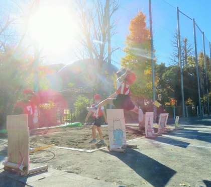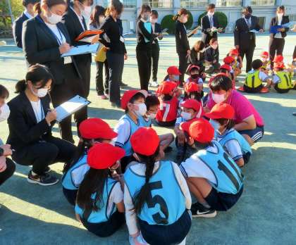 チャックタイムです。グループ毎に、遊びの中で見つけた跳び方のコツを全体で共有しました。
