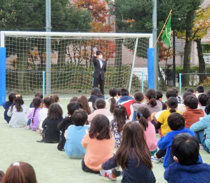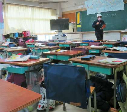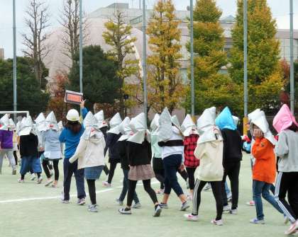 世田谷区災害対策課の方が訓練の様子を見ていて「校長先生は厳しいですね。お子さんたちは、全くお喋りがなく静かで真剣に取り組んでいますね」と褒めていただきました。
